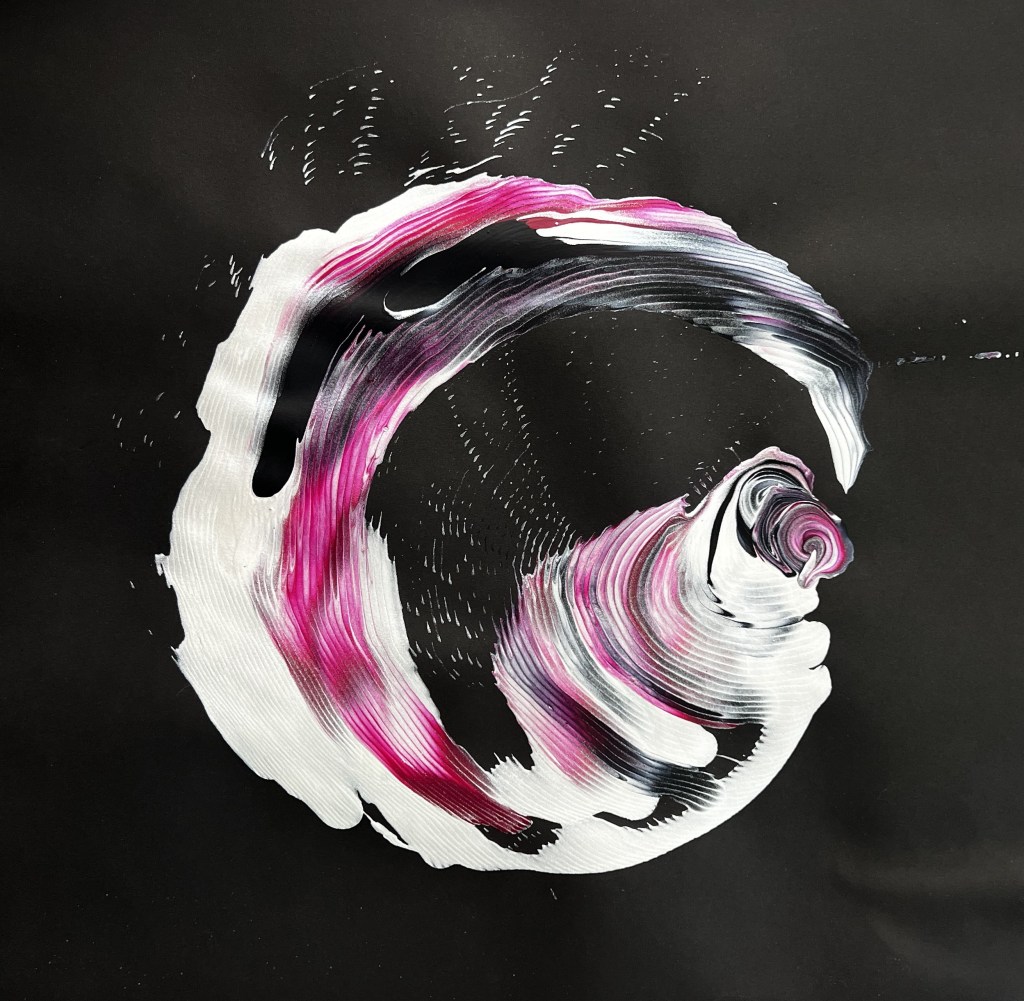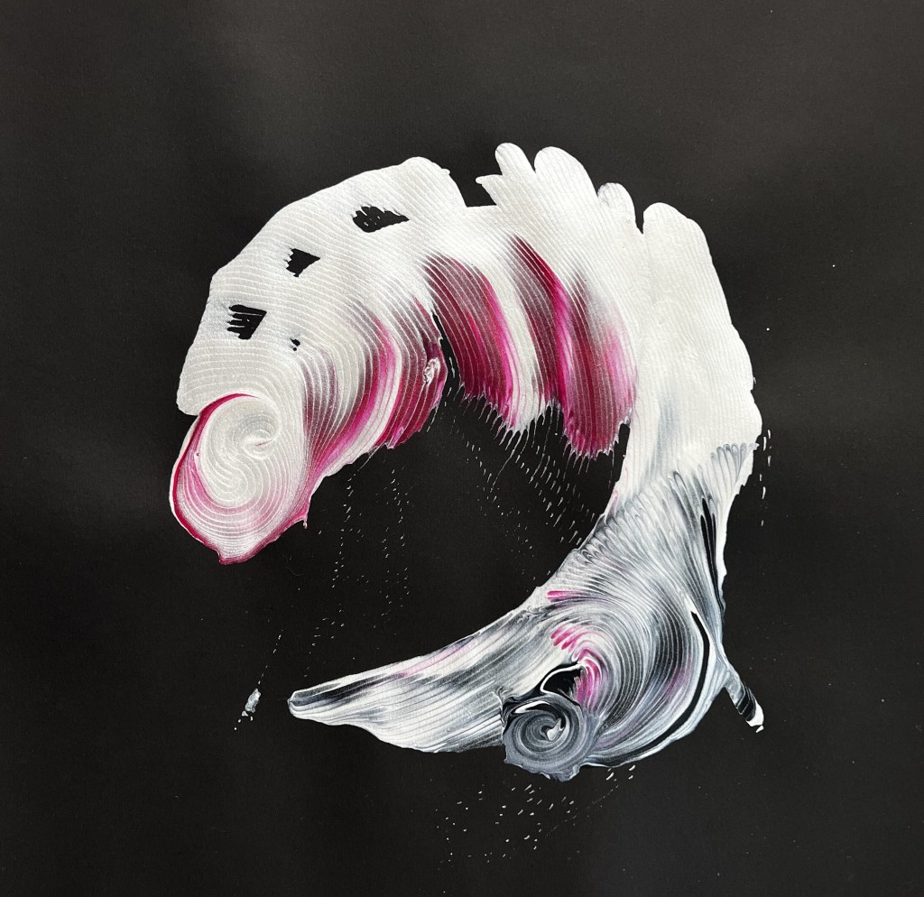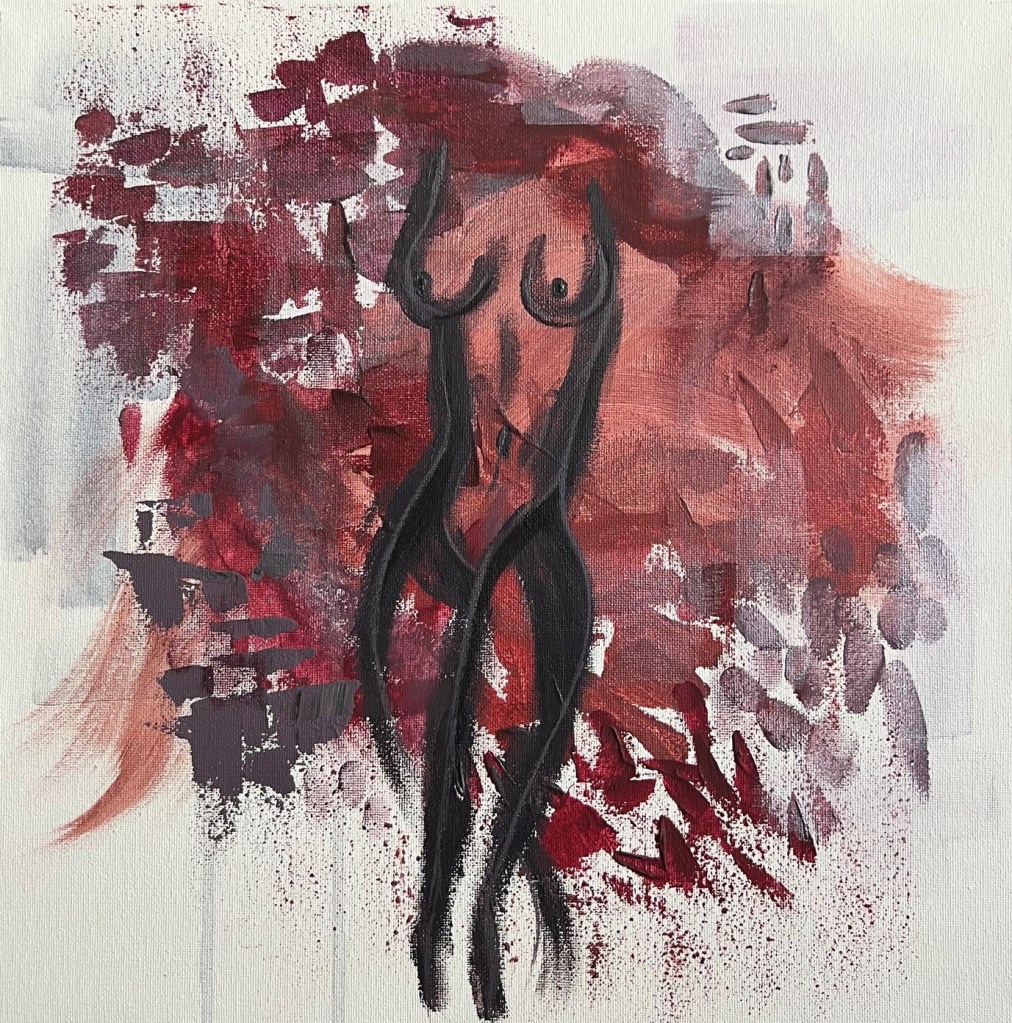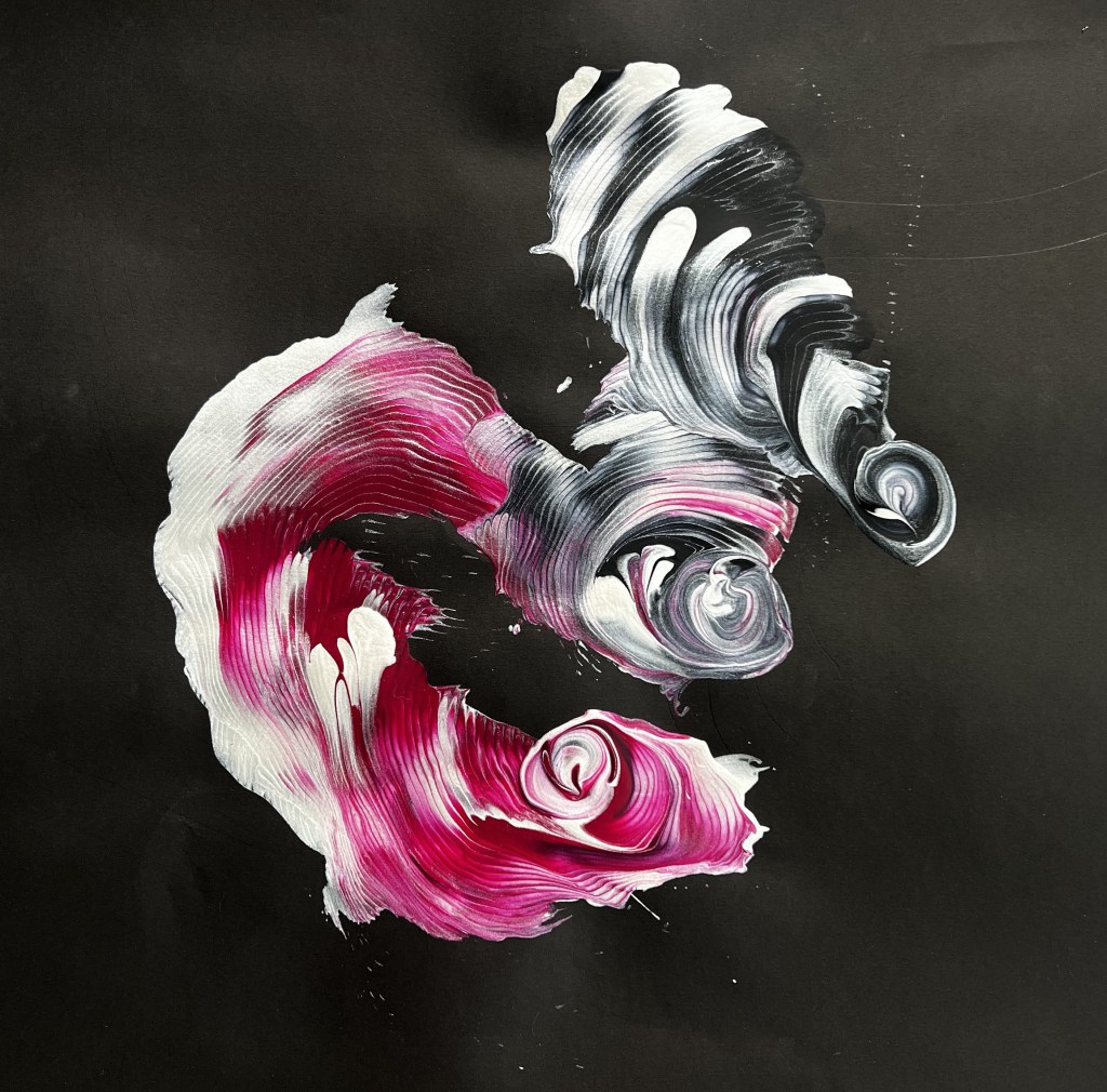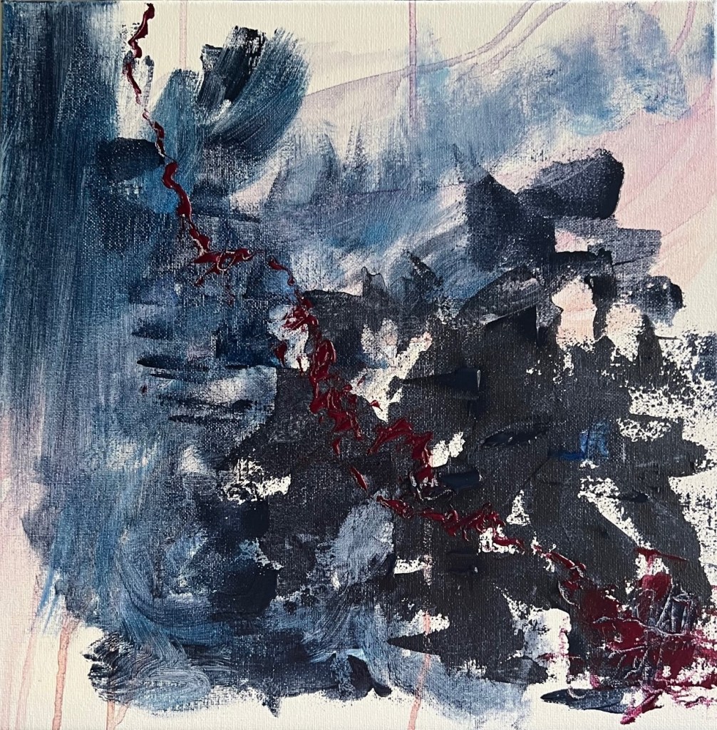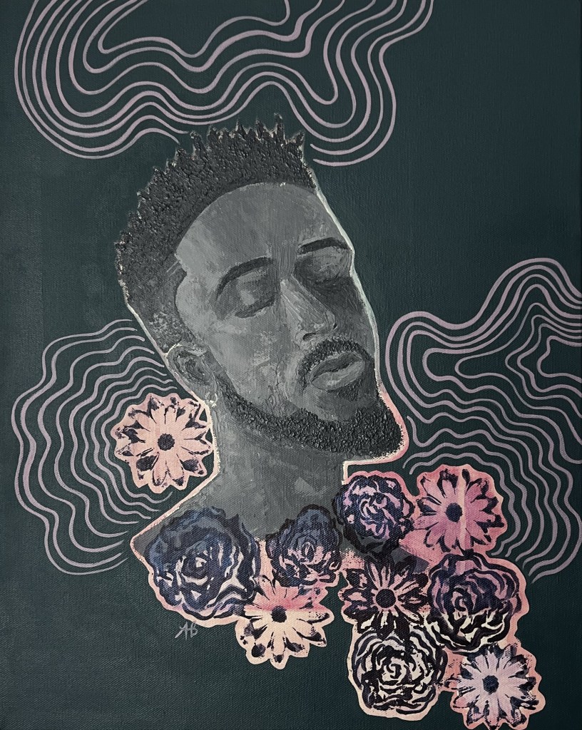 I began painting back in 2020 when I had free time during the pandemic. I fell in love with it and it has become my peace in times of emotional distress as I navigate my adult life and my job in the military. The first four pieces started as simply painting and expressing my feelings. They were painted when I was in a place of deep emotional turmoil. The last and most recent paintings, (Finding Perfection, Organized Chaos and Vulnerable) I wanted to focus on detail and intention with my brush strokes. Focusing on detail grounded me in the moments when I fell into moments of anxiety. Painting has turned into a therapy, an escape that has grounded me in moments when I am at my worst.